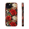Gold-Kissed Flowers on Pink Lace - MagSafe Tough Cases for iPhone 13, iPhone 13 Mini, iPhone 13 Pro, and iPhone 13 Pro Max.