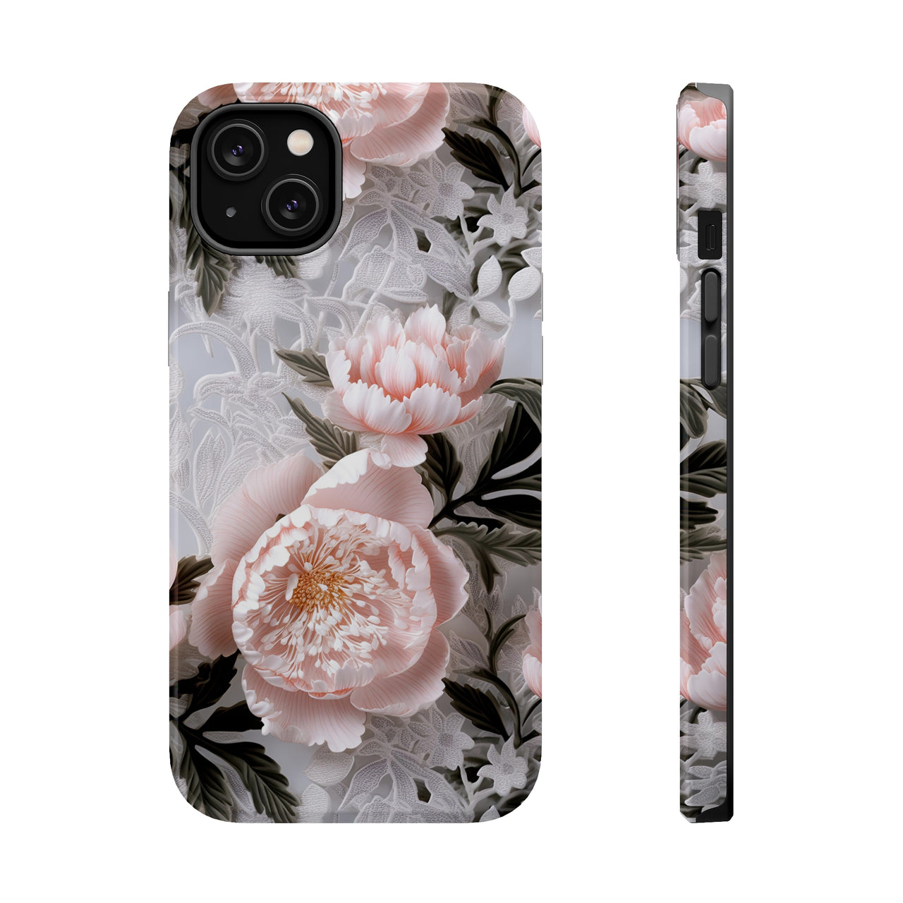 Pink Peony MagSafe Tough Cases for iPhone 14, iPhone 14 Pro, iPhone 14 Plus, and iPhone 14 Pro Max
