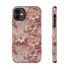 Gold-Kissed Flowers on Pink Lace - MagSafe Tough Cases for iPhone 13, iPhone 13 Mini, iPhone 13 Pro, and iPhone 13 Pro Max.