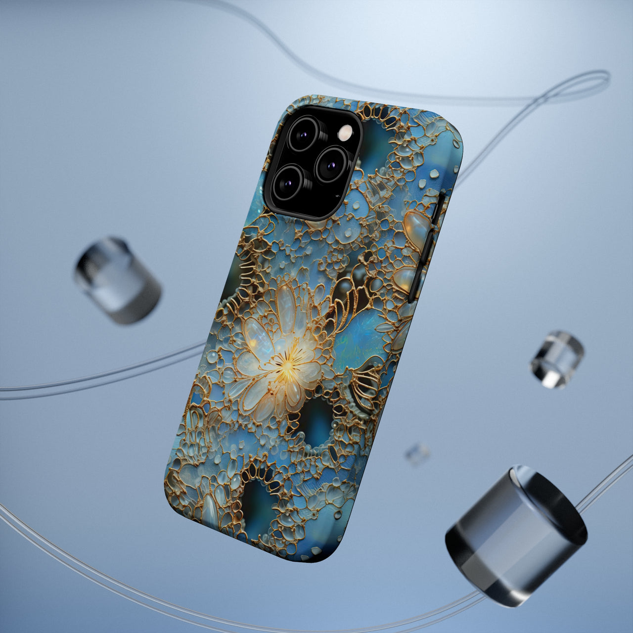 Gemstones and Gold Lace MagSafe Tough Cases for iPhone 14, iPhone 14 Pro, iPhone 14 Plus, and iPhone 14 Pro Max