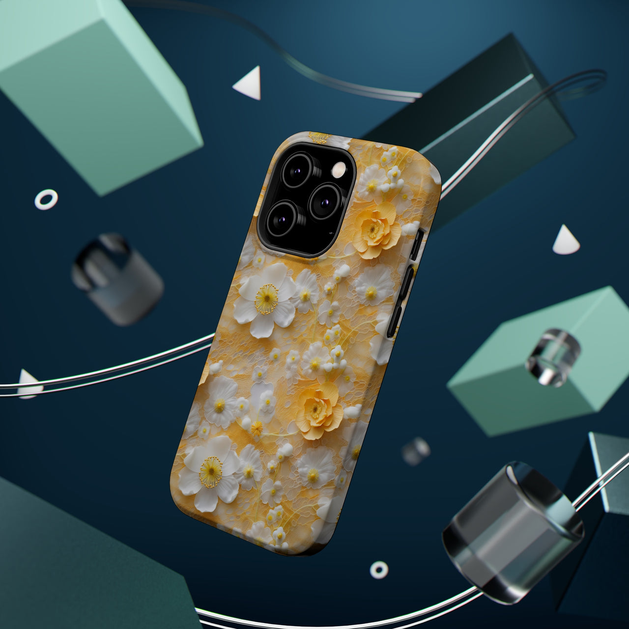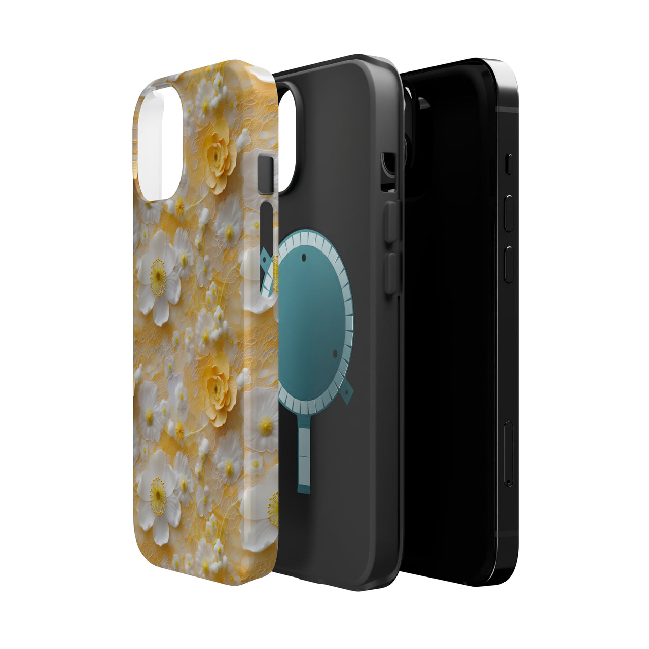 Yellow Floral MagSafe Tough Cases for iPhone 14, iPhone 14 Pro, iPhone 14 Plus, and iPhone 14 Pro Max